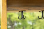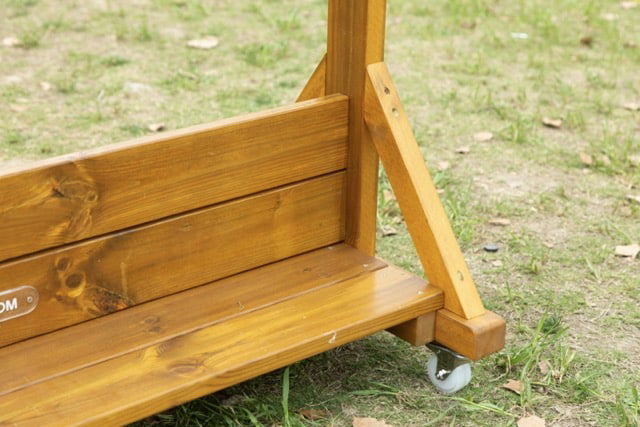 Mit ihrer robusten Konstruktion aus kesseldruckimprägniertem Kiefernholz und der zweifachen Holz-Öl-Wachs-Lasur ist die Garderobe besonders langlebig, wetterbeständig und optisch ansprechend. Die wetterfeste Markise schützt Kleidung und Schuhe zuverlässig vor Regen und Sonne, während die pulverbeschichteten Dreifach-Haken genug Platz bieten, um Jacken, Taschen oder Matschhosen übersichtlich aufzuhängen.