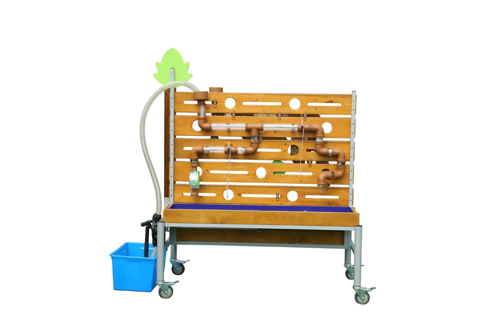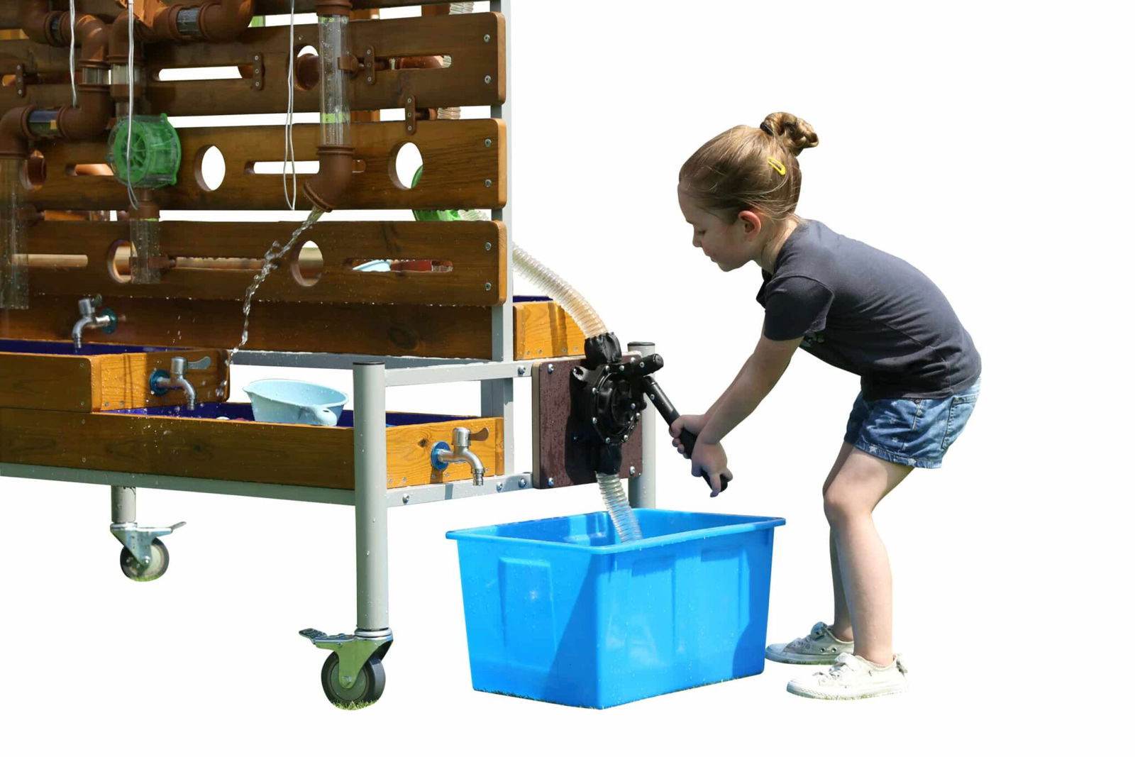 Die Kinder werden begeistert sein, wenn sie die Handpumpe nutzen, um Wasser in die Röhren zu befördern und zu beobachten, wie es durch die verschiedenen Verbinder fließt. Ein beeindruckendes Wasserrad sorgt für zusätzlichen Spaß, indem es durch das fließende Wasser angetrieben wird. Hier können die Kinder Boote schwimmen lassen, kleine Stauseen bauen oder einfach das kühle Nass genießen – die Möglichkeiten sind unbegrenzt!