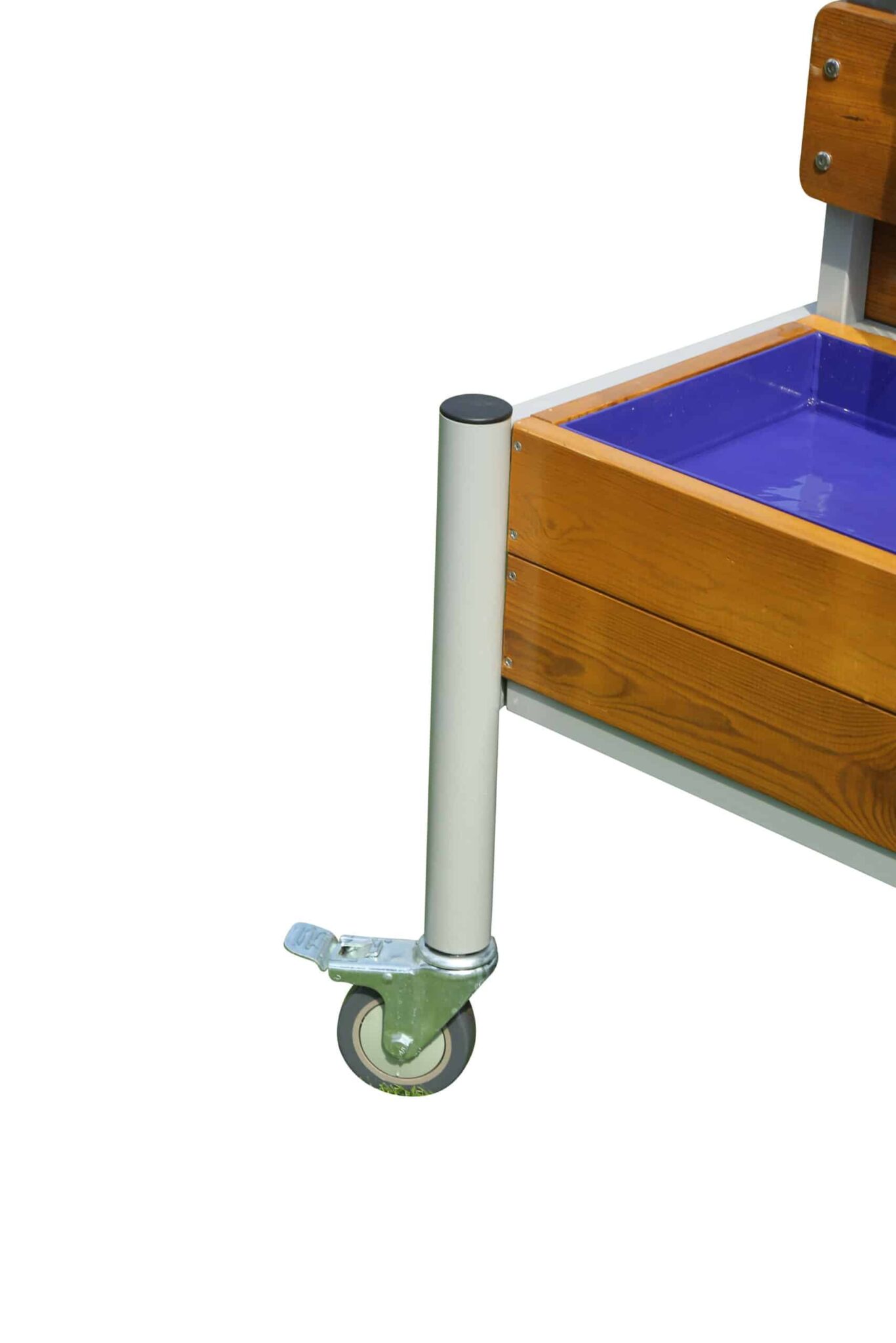 Ein weiteres Highlight der Wasserspiel-Anlage ist ihre Mobilität. Sie ist mit strapazierfähigen Rollen und einer Feststellbremse ausgestattet, was ein müheloses Verschieben ermöglicht. Dadurch können Sie die Anlage je nach Wetterlage oder Aktivität schnell umstellen. Die stabile pulverbeschichtete Stahlunterkonstruktion gewährleistet dabei einen sicheren Stand, selbst bei energiegeladenen Spielen.