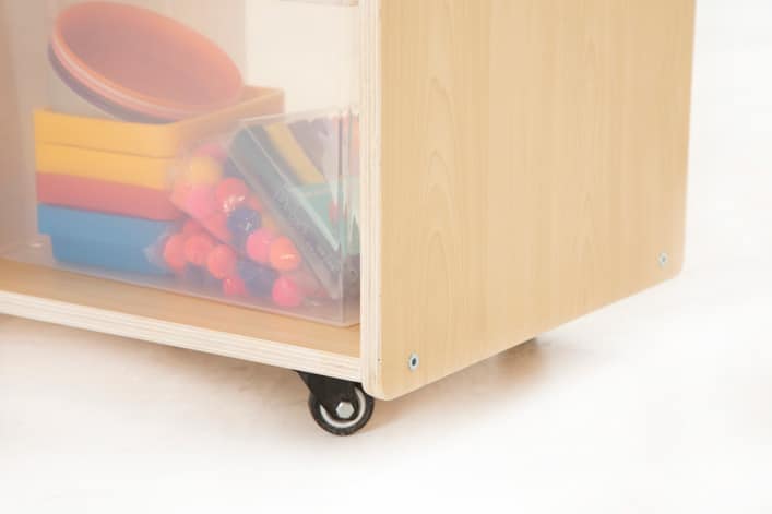 - Material: Pappel-Multiplex mit Melaminbeschichtung in Ahorn-Optik, Rollen aus pulverbeschichtetem Stahl und gummierter Bereifung