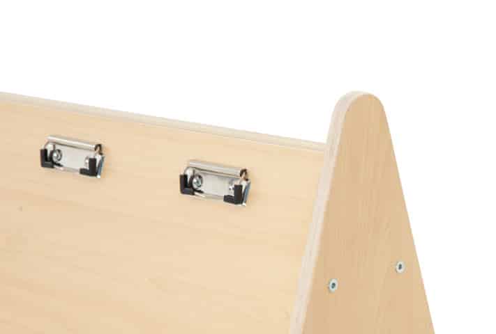 Die mobile Staffelei kommt mit vier leichtgängigen Rollen, die ein müheloses Bewegen an den gewünschten Ort ermöglichen. Zwei der Rollen sind mit Feststellbremsen ausgestattet, um während der Nutzung einen sicheren und stabilen Stand zu gewährleisten. Die Kinder können so unbesorgt gemeinsam malen und zeichnen, während die Staffelei an ihrem Platz bleibt.