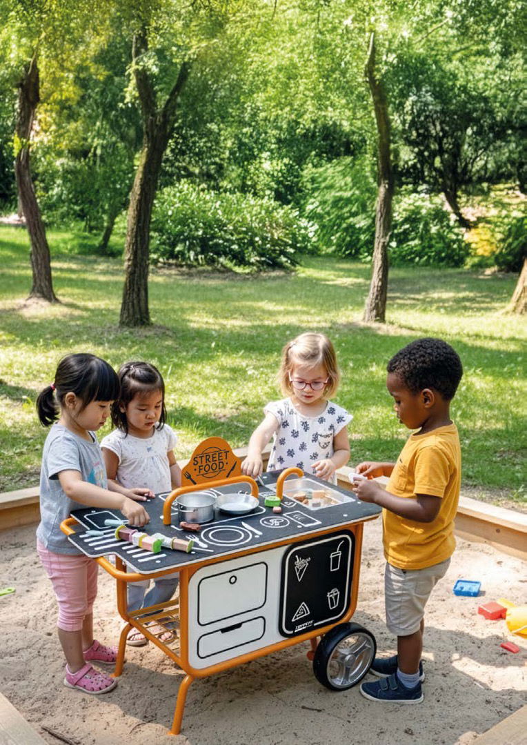 Die Mobile Streetfood Station bietet Kindern eine professionelle Bühne für ihre Rollenspiele und überzeugt im pädagogischen Alltag durch ihre Langlebigkeit und Funktionalität.