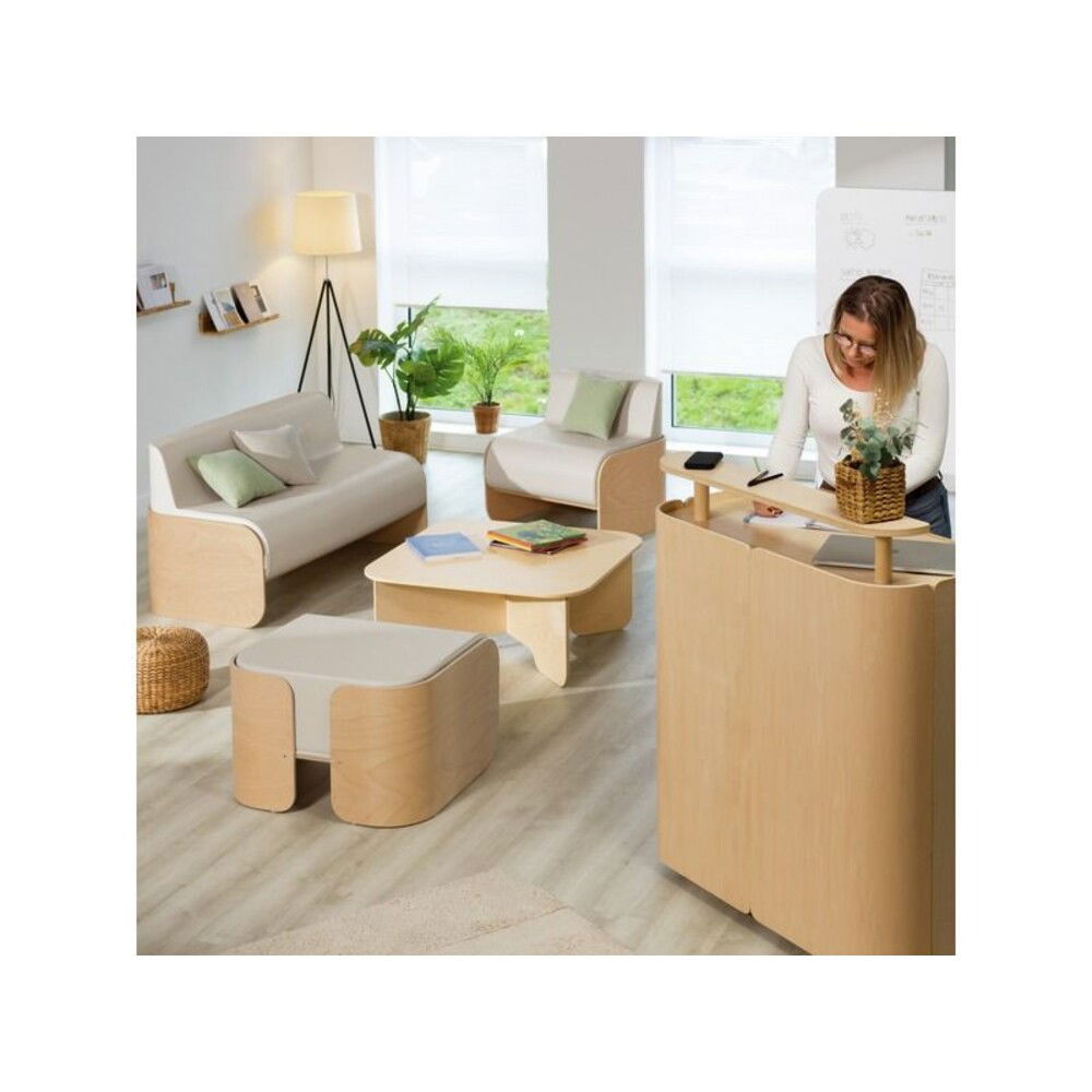 Diese Empfangstheke aus lackiertem Sperrholz ist ein unverzichtbares Element für jeden Eingangsbereich. Sie besticht nicht nur durch ihr klares Design, sondern auch durch ihre durchdachte Funktionalität. Die praktische, erhöhte Ablagefläche aus Holz eignet sich hervorragend, um Informationsbroschüren, Dokumente oder kleine Aufmerksamkeiten ansprechend zu präsentieren. Gleichzeitig erleichtert diese Erhöhung den direkten Kontakt und die Kommunikation mit Ihren Besuchern auf einer angenehmen Höhe.