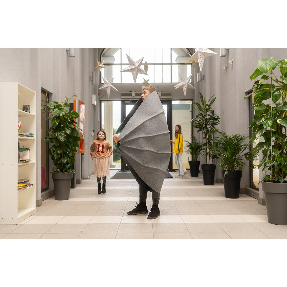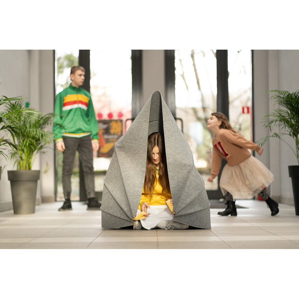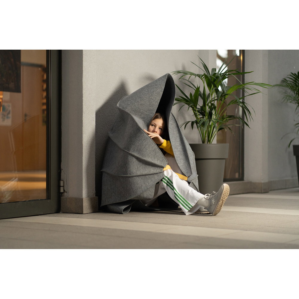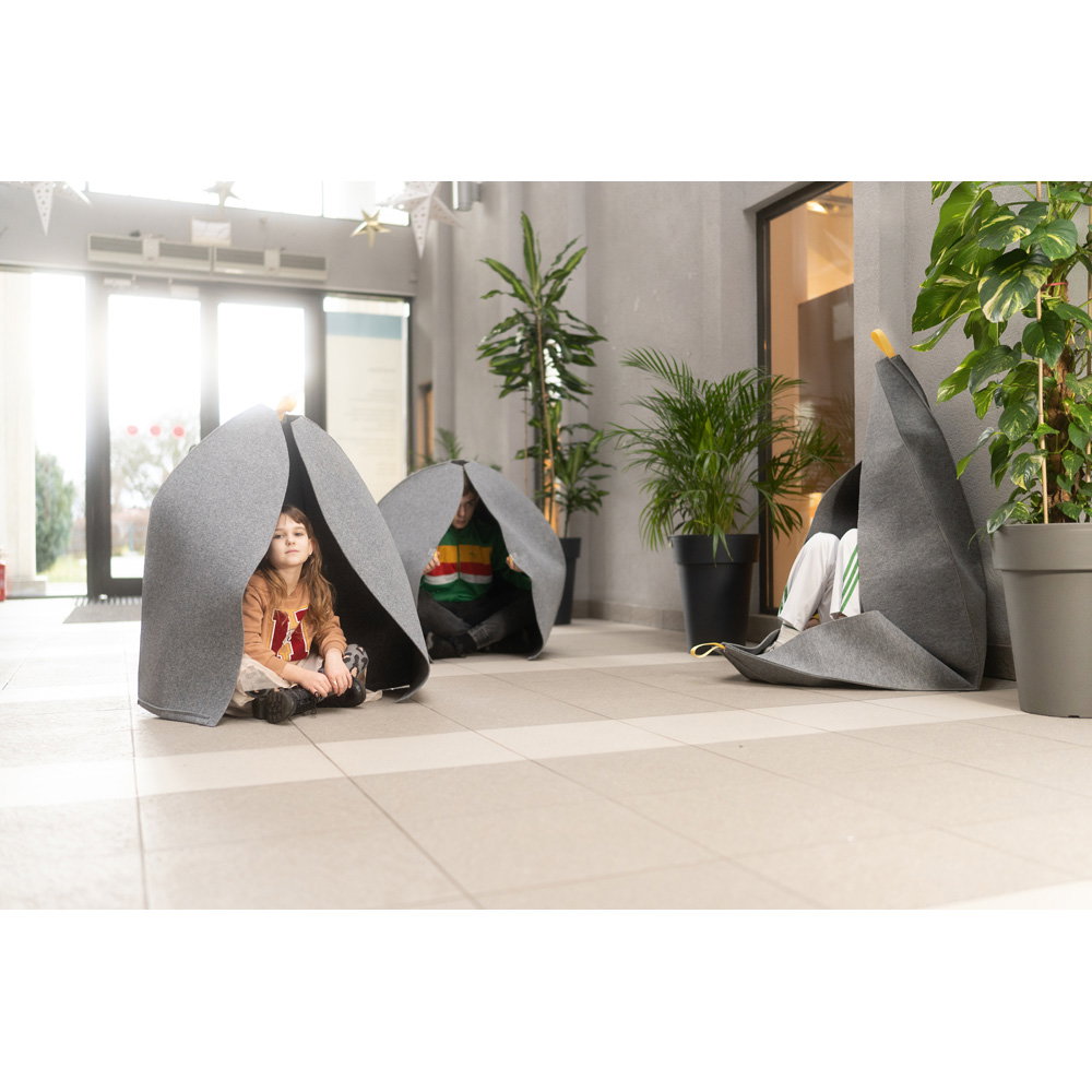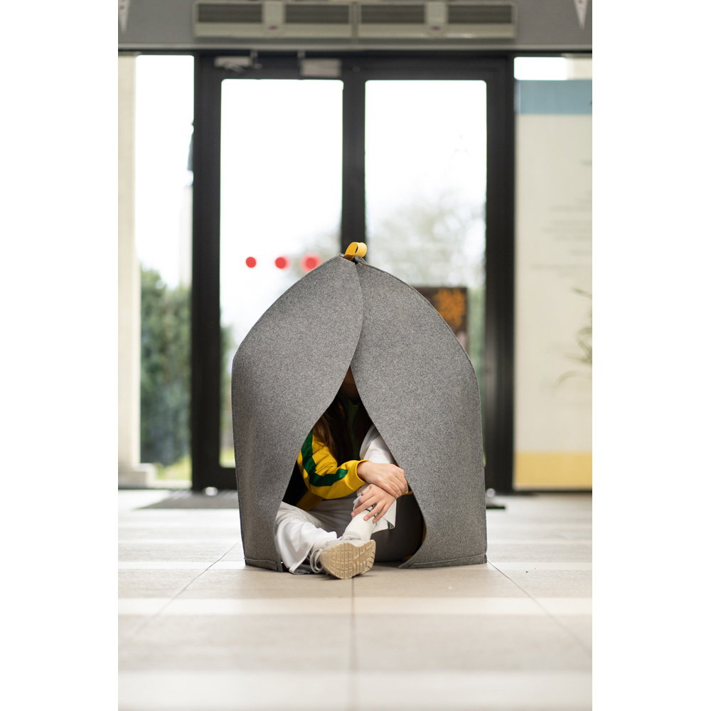 Entwickelt von der Pädagogin und Designerin Wioletta Matusiak, schafft diese mobile Ruhezone einen Mikroraum der Geborgenheit. Sie ist eine sofort einsetzbare Lösung, die Kindern hilft, sich vorübergehend von Lärm und Hektik abzuschirmen, Reize zu verarbeiten und ihr Sicherheitsgefühl wiederzuerlangen. Ohne Montage und leicht zu transportieren, wird sie schnell zum unverzichtbaren Begleiter für achtsame Pausen im pädagogischen Umfeld.
