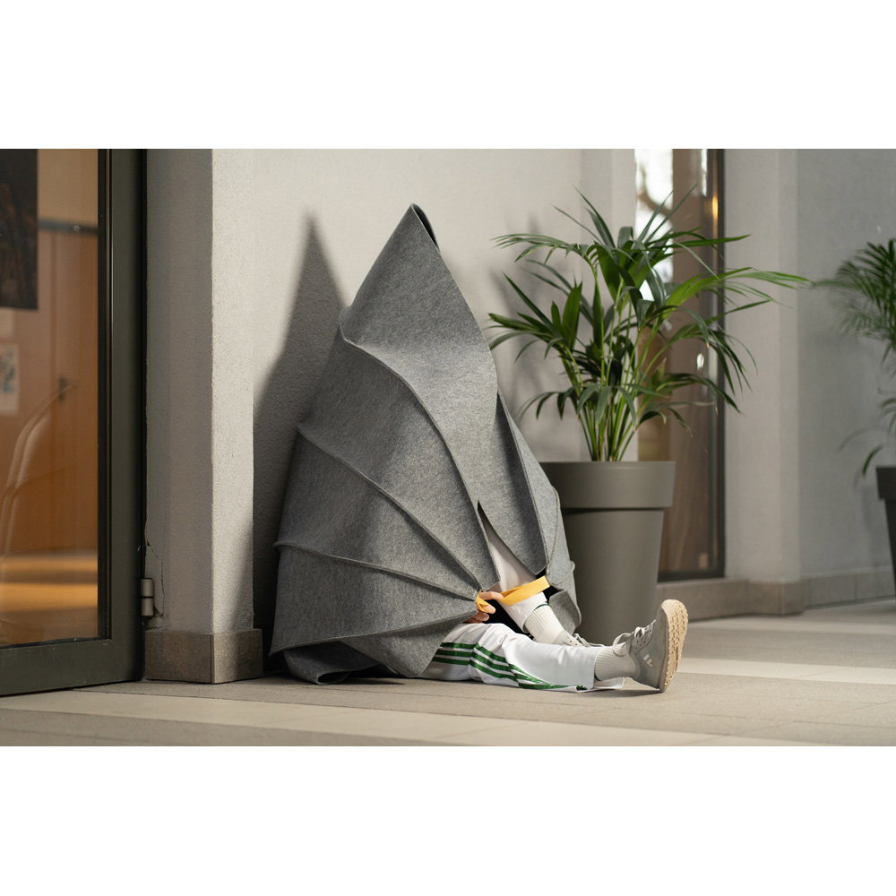 Die Kokons bestehen aus stabilem, 4 mm dickem Polyesterfilz, der nach OEKO-TEX® Standard 100 zertifiziert ist. Das Material ist nicht nur robust und langlebig, sondern fühlt sich auch weich und angenehm an. Es schafft eine warme, einladende Atmosphäre, die zum Verweilen einlädt. - Einfache Integration in jedes Konzept