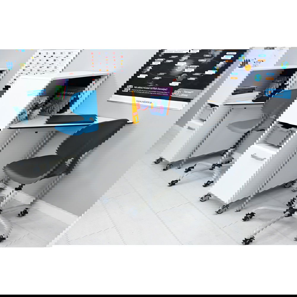 Die Zukunft des Lernens und Arbeitens liegt in der Anpassungsfähigkeit. Starre Raumkonzepte werden durch dynamische Landschaften ersetzt, die kreative Zusammenarbeit und konzentrierte Einzelarbeit gleichermaßen ermöglichen. Der Mobile Arbeitsplatz easyMoove 3 ist die Verkörperung dieser neuen Flexibilität. Er kombiniert den innovativen, dreieckigen easyMoove Tisch mit dem hohen, schmalen Grande Rollschrank C zu einer Einheit, die nicht nur ergonomisch und mobil ist, sondern auch unzählige Kombinationsmöglichkeiten für Gruppenarbeiten eröffnet.