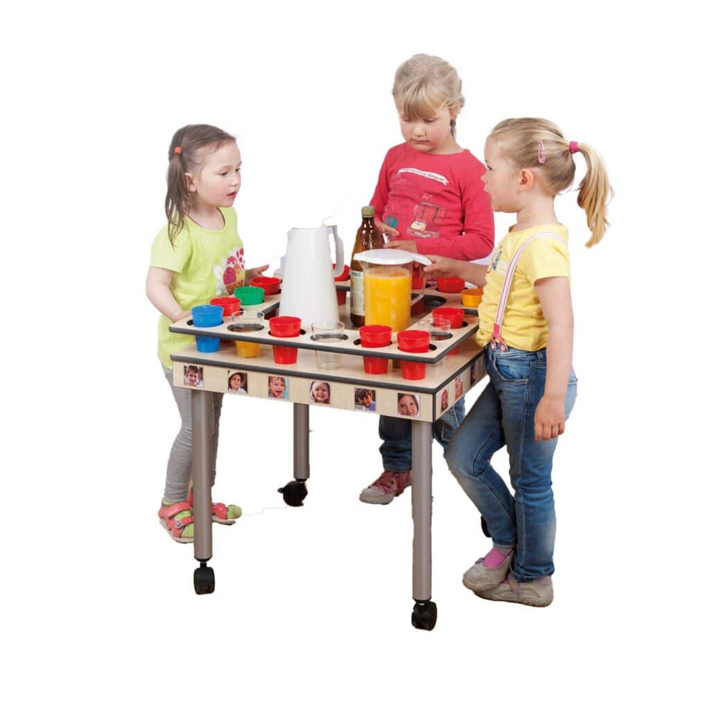 • Klar definierter Trinkbereich: Der Wagen dient als klar erkennbare „Trinkstation“. Dies hilft, Essens- und Spielbereiche voneinander zu trennen und fördert strukturierte Abläufe während des Tages.