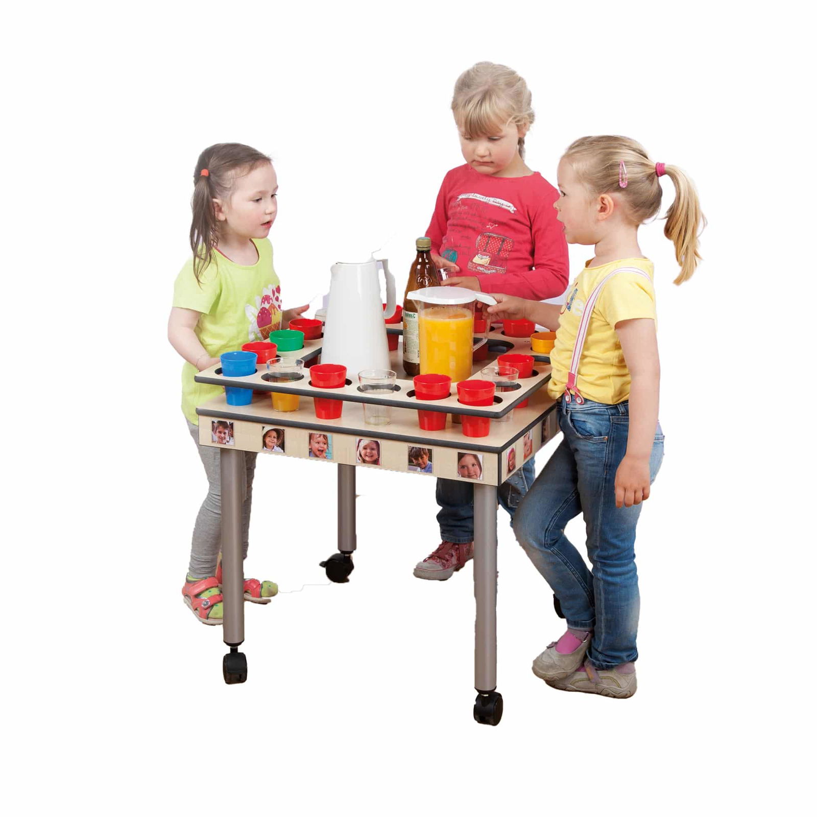 • Getränke, wo immer sie gebraucht werden: Ob im Gruppenraum, in der Turnhalle, im Garten oder auf dem Flur – dank der vier leichtgängigen Rollen bringen Sie die Erfrischungen mühelos an jeden gewünschten Ort.