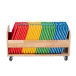 Der robuste Wagen aus Birkenholz ist mit leichtgängigen Rollen ausgestattet. Dadurch können Sie die Sitzkissen mühelos dorthin bringen, wo sie gerade gebraucht werden: vom Gruppenraum in die Turnhalle, auf die Terrasse oder in den Garten. Diese Mobilität ermöglicht spontane Aktivitäten und eine flexible Raumnutzung ohne mühsames Tragen.