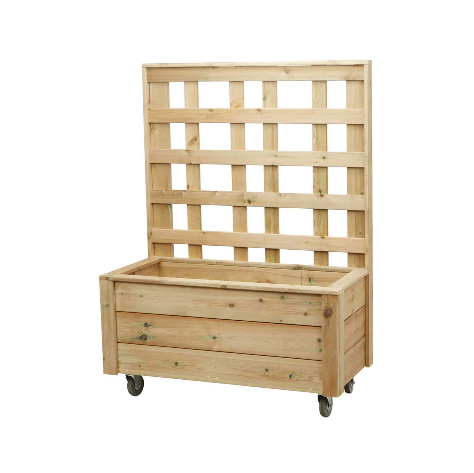 Hergestellt in Großbritannien aus speziell behandeltem, skandinavischem Rotholz, ist dieser Pflanzkasten für den jahrelangen Einsatz im Freien konzipiert. Die sorgfältig glatt geschliffenen Oberflächen und die abgerundeten Ecken minimieren jedes Verletzungsrisiko. Die vier Lenkrollen sind feststellbar, sodass der Wagen bei Bedarf sicher an seinem Platz steht. Eine 10-Jahres-Garantie auf das Holz unterstreicht die herausragende Qualität.