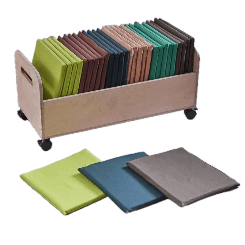 Schaffen Sie im Handumdrehen eine gemütliche, organisierte und flexible Lernumgebung! Unser mobiler Sitzkissenwagen mit 30 komfortablen, wasserfesten Kissen ist die perfekte Lösung für dynamische Gruppenräume in Kitas, Kindergärten und Grundschulen. Dieses durchdachte Set aus der Healdswood-Möbelserie kombiniert praktischen Stauraum mit komfortablen Sitzgelegenheiten und macht Schluss mit unordentlichen Kissenhaufen. Der kompakte Holzwagen auf Rollen ermöglicht es den Kindern, selbstständig für Ordnung zu sorgen und ihre Lieblingssitzplätze für den Morgenkreis, die Leseecke oder Gruppenaktivitäten auszuwählen. Mit diesem Set wird jeder Raum im Nu zur einladenden Komfortzone, die zum Verweilen, Lernen und Entdecken einlädt.