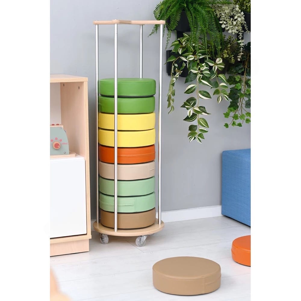Mobiler Ständer für runde Sitzkissen – Die elegante Lösung für platzsparende Aufbewahrung und professionelle Raumorganisation