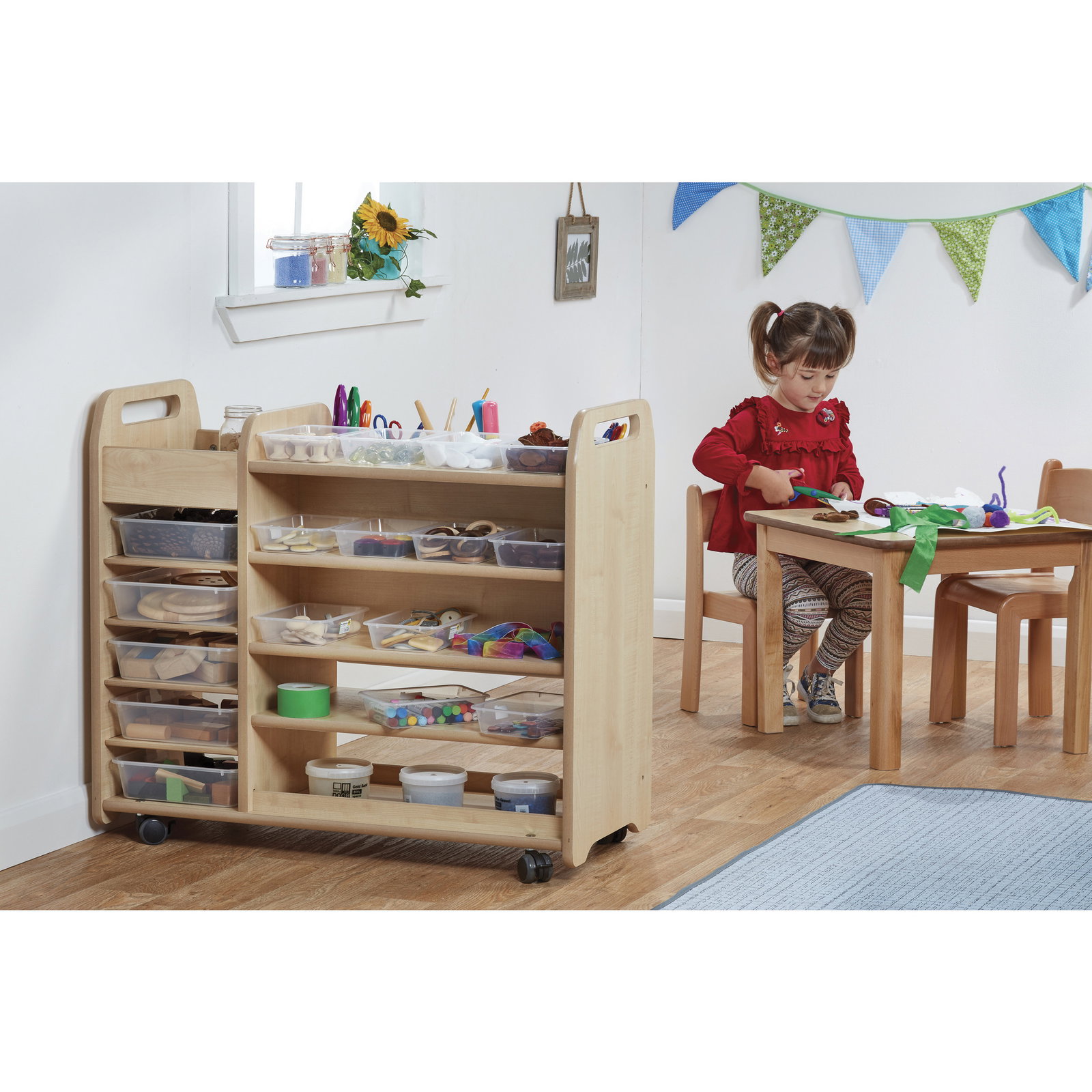 - Förderung der Selbstständigkeit: Die kindgerechte Höhe und Struktur ermutigen Kinder, ihre Materialien eigenständig zu verwalten.