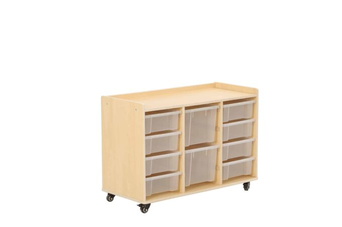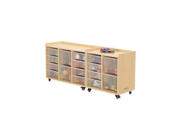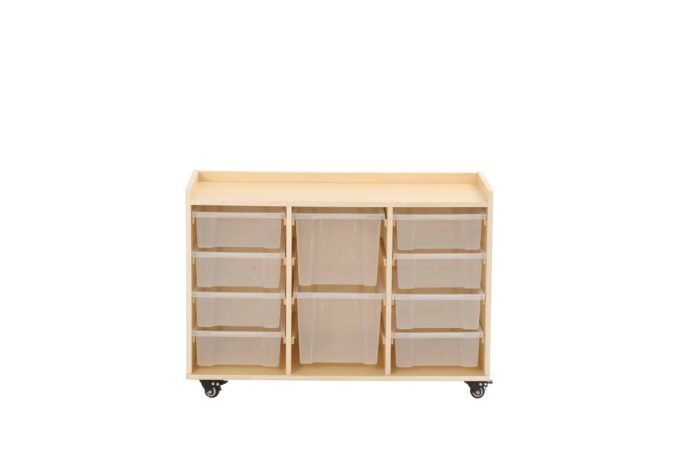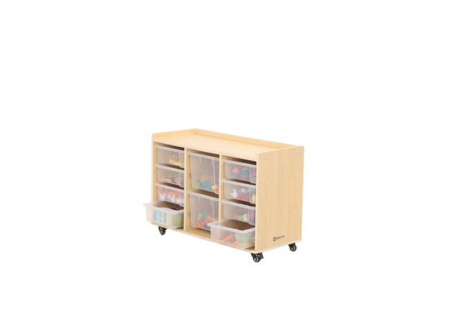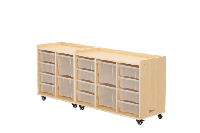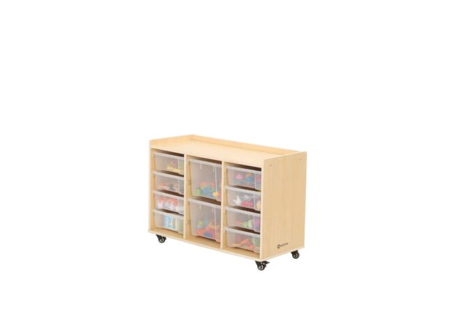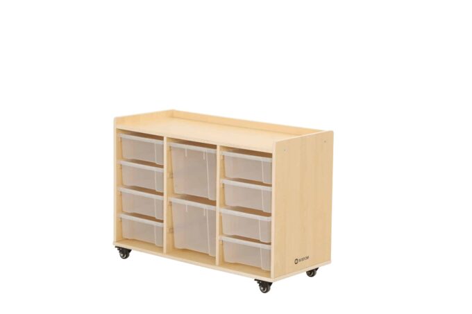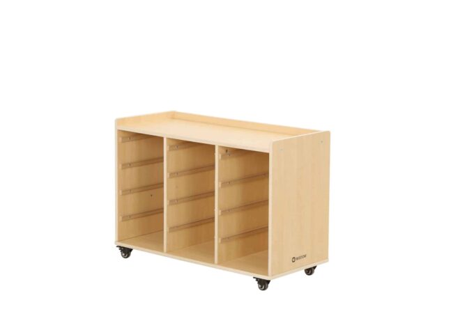 Das WISDOM mobile Regal mit 3 Reihen – 8 kleinen und 2 großen Boxen ist die perfekte Lösung für alle, die Wert auf durchdachte Aufbewahrung, Flexibilität und langlebige Qualität legen. Es kombiniert kindgerechte Funktionalität mit hochwertiger Verarbeitung und unterstützt den pädagogischen Alltag auf praktische und ästhetische Weise.