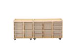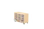 Gefertigt aus stabilem Pappel-Multiplex mit einer Melaminbeschichtung in warmer Ahorn-Optik, überzeugt das Regal durch eine natürliche Ästhetik und hohe Langlebigkeit. Die Boxen aus Polypropylen (PP) sind robust, pflegeleicht und für den täglichen Gebrauch bestens geeignet. Dank der mobilen Rollen mit Feststellbremsen kann das Regal mühelos bewegt und sicher positioniert werden – perfekt für flexible Raumgestaltung.
