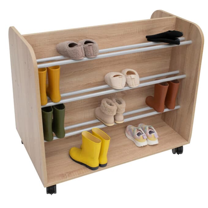 Das mobile Schuhregal „Armadio“ wurde entwickelt, um maximale Funktionalität und Langlebigkeit auf kleinstem Raum zu bieten und den pädagogischen Alltag spürbar zu erleichtern.