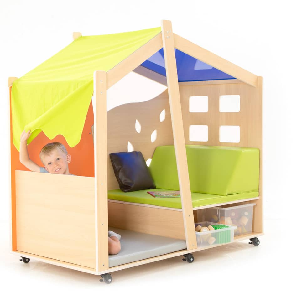 - Vielseitig einsetzbar: Perfekt geeignet für Gruppenräume, Flure oder Spielbereiche – das mobile Haus lässt sich leicht bewegen und flexibel positionieren.