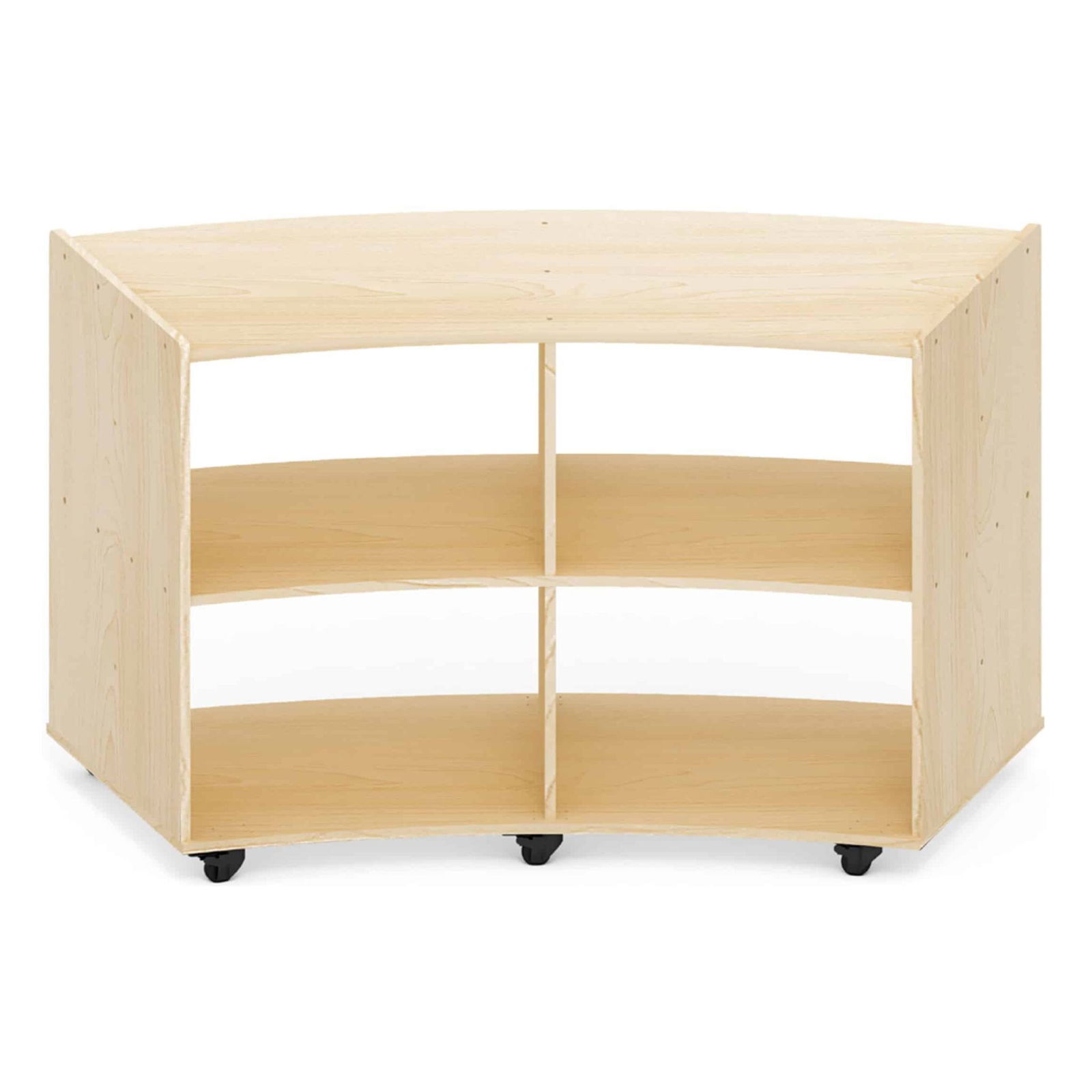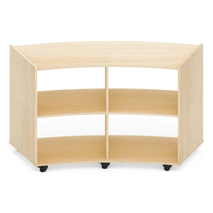 Bringen Sie Schwung und Flexibilität in Ihre Einrichtung mit unserem praktischen mobilen Viertelkreis-Regal mit 4 Fächern! Dieses innovative Regal ist die ideale Lösung für Kindergärten, Schulen und Spielräume, wo es darauf ankommt, kreative Materialien, Bücher und Spielzeug ordentlich und griffbereit zu verstauen.