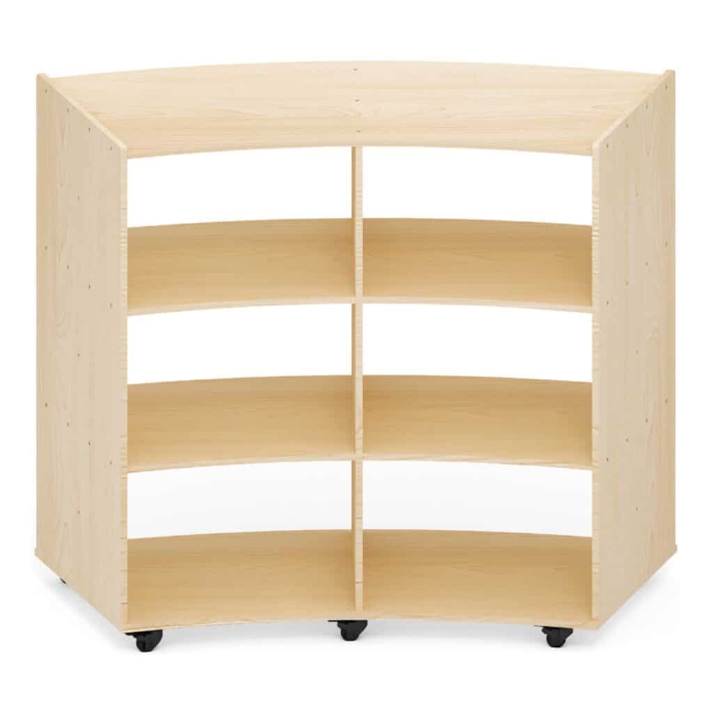 Bringen Sie Ordnung und Stil in jede Umgebung mit unserem mobilen Viertelkreis-Regal mit 6 Fächern! Dieses praktische Regal ist ideal für Kindergärten, Schulen und Spielzimmer und sorgt dafür, dass Materialien und Spielzeuge immer griffbereit und ordentlich verstaut sind. Ein absoluter Gewinn für jeden kreativen Raum!