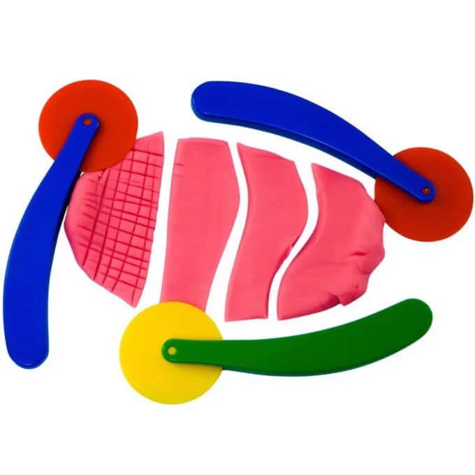 Dank der stabilen, ergonomisch geformten Griffe liegen die Räder fest und sicher in der Hand. Das glatte Kunststoffrad gleitet mühelos durch jede Art von Modelliermasse und hilft Kindern dabei, die Kontrolle zu behalten und saubere, gerade Schnitte zu erzielen. Sie sind aber nicht nur zum Schneiden da: Mit leichtem Druck lassen sich auch feine Linien und Muster in die Oberfläche der Knete prägen, ohne sie zu durchtrennen. Ein einfaches, aber unglaublich vielseitiges Werkzeug, das in keiner Kreativ-Ecke fehlen sollte.