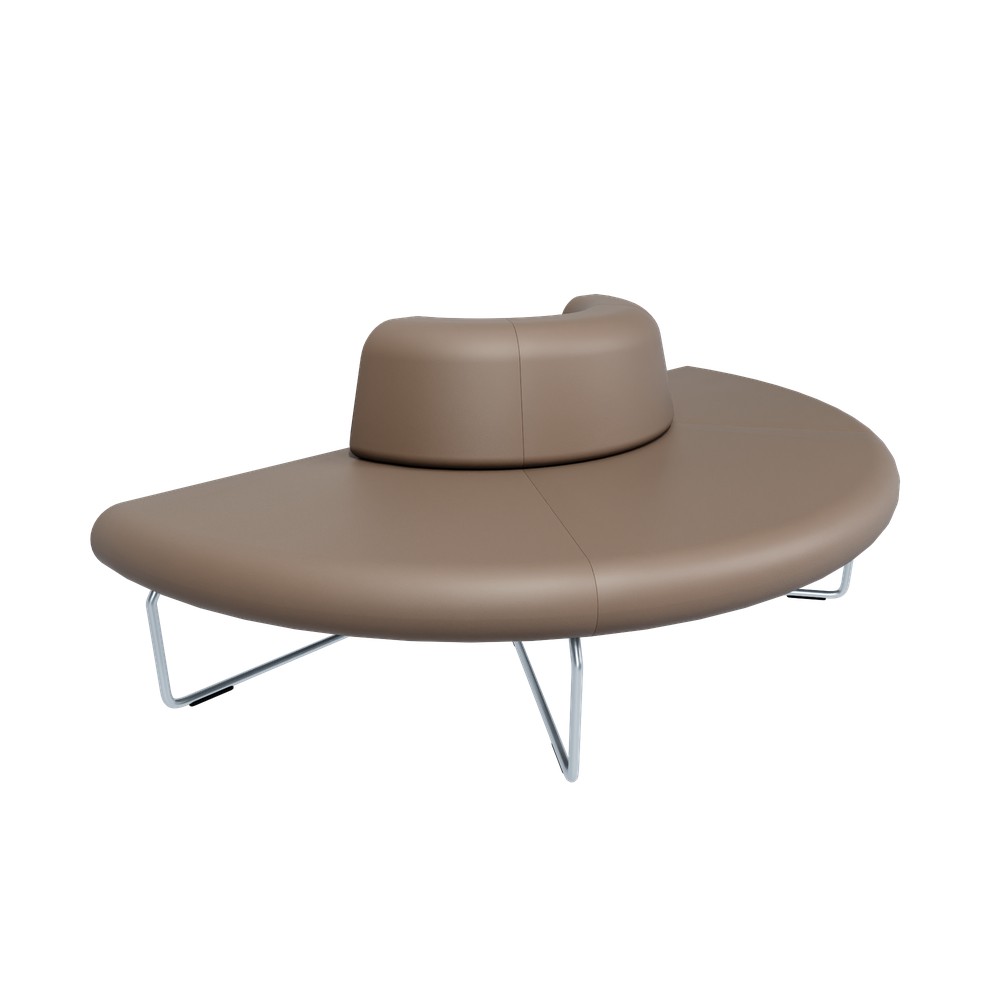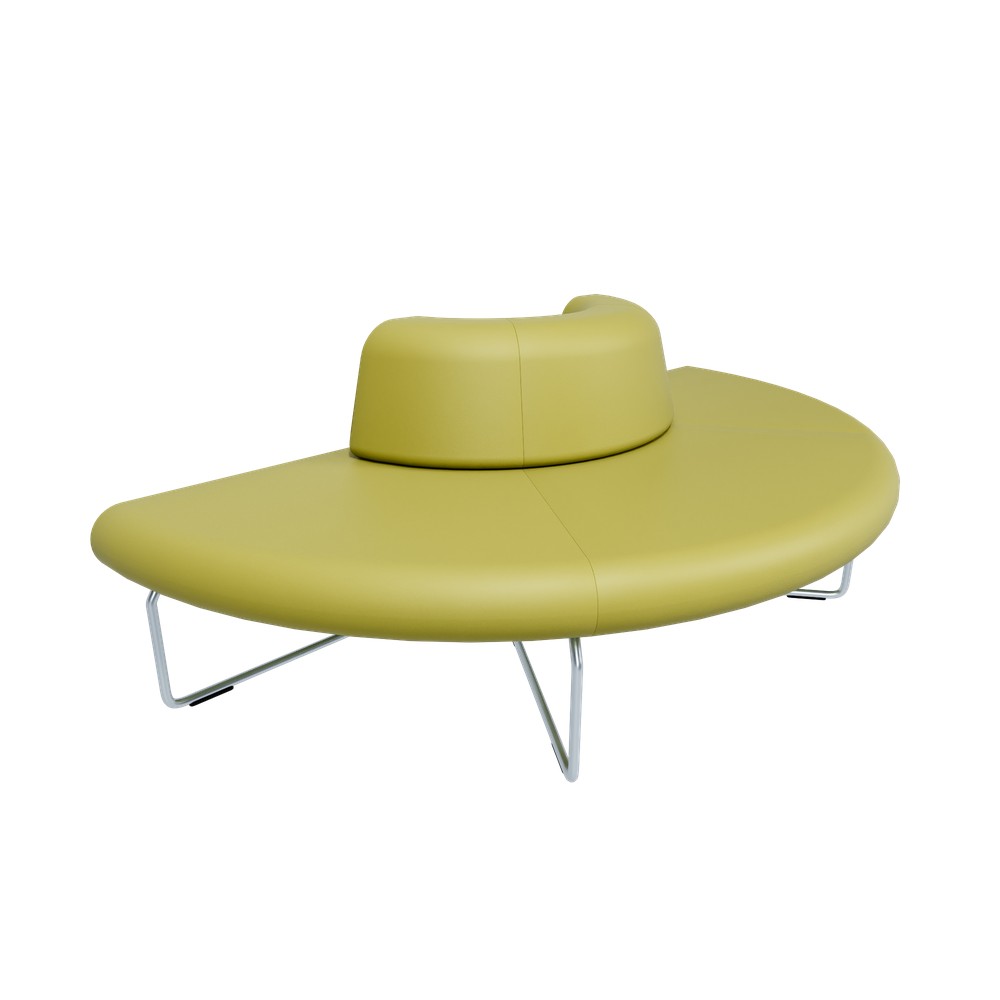 - Kommunikatives Design: Die halbrunde 180-Grad-Form mit innenliegender Lehne schafft eine einladende Insel, die den sozialen Austausch aktiv unterstützt.