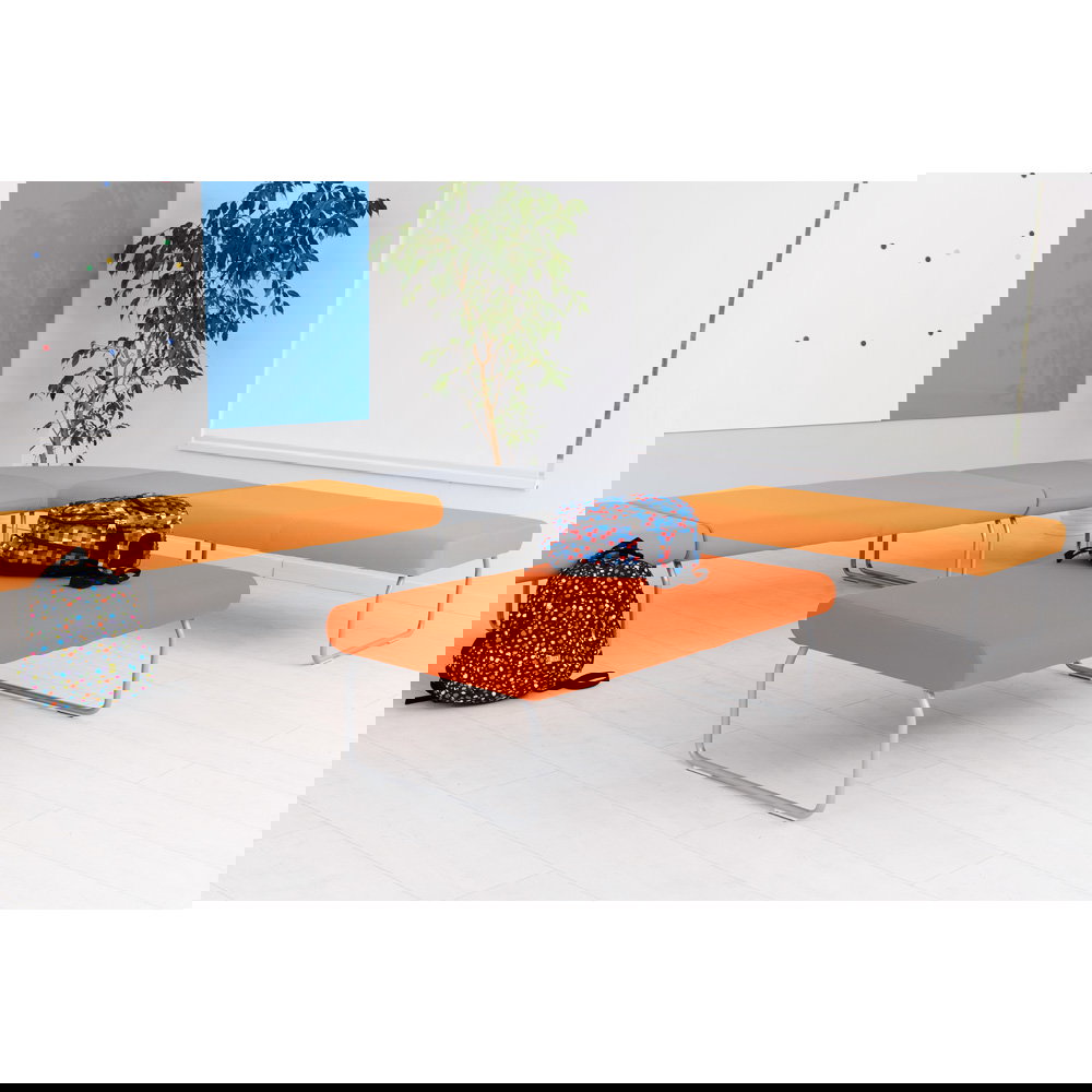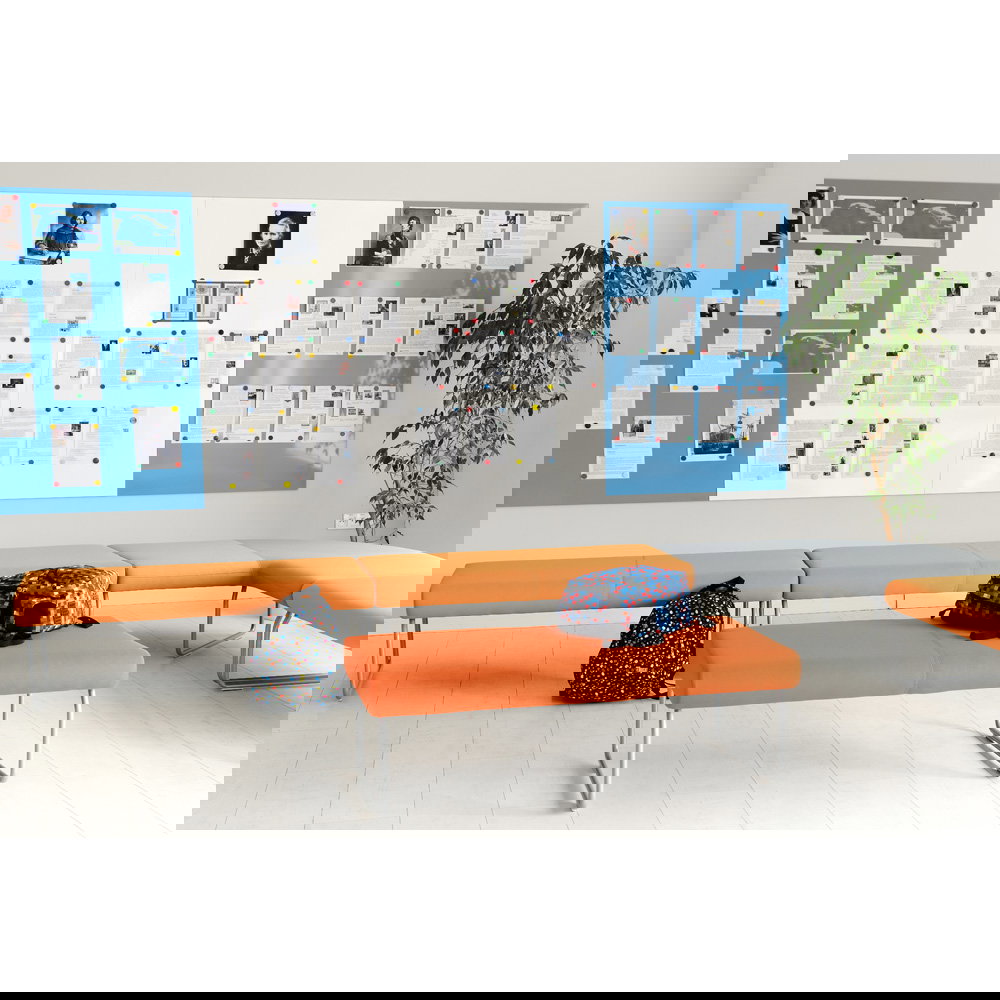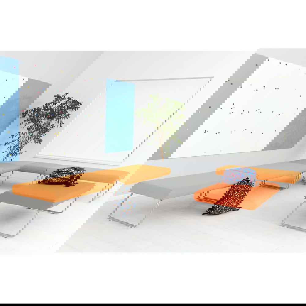 Im intensiven Alltag in öffentlichen Gebäuden muss ein Möbelstück vor allem robust und sicher sein. Der Bezug aus dem Spezialgewebe „Bond“ besteht zu 100 Prozent aus Polyester und ist äußerst strapazierfähig. Er erfüllt die strengen Brandschutznormen EN 1021-1 (Zigarettentest) sowie EN 1021-2 (Streichholztest) und ist nachweislich schwer entflammbar. Wählen Sie aus sieben aufeinander abgestimmten Farben – Senf, Orange, Grün, Rot, Blau, Hellgrau und Graphit –, um lebendige Akzente zu setzen oder eine dezente Atmosphäre zu schaffen.