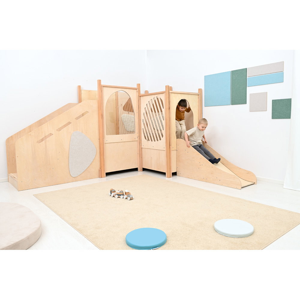 Von der Rutsche über die Treppe bis hin zur Sensorik- und Spiegelwand bietet dieses Set abwechslungsreiche Aktivitäten, die keine Langeweile aufkommen lassen. - Nachhaltige und unbedenkliche Materialien