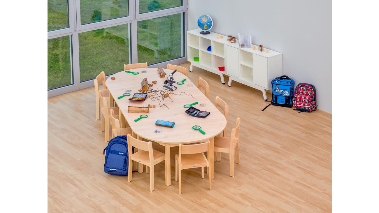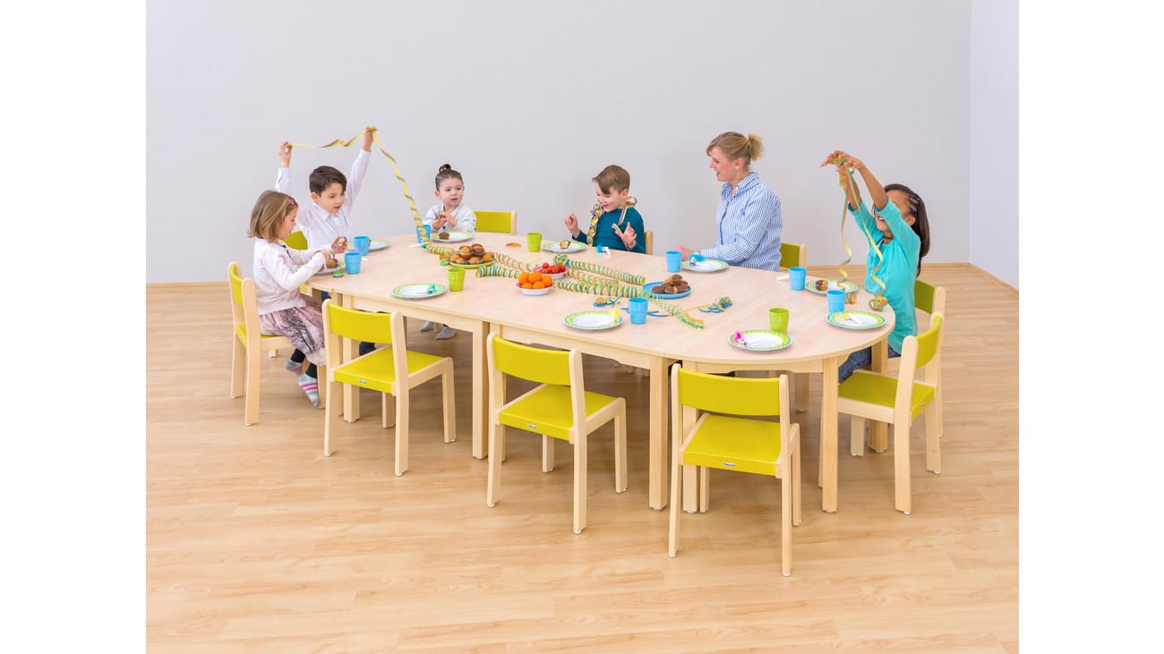 Um die Geräuschentwicklung während des Spiels zu minimieren und den Boden zu schonen, sind die Tische und Stühle zudem mit Gleitern ausgestattet.