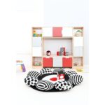 Dieser Möbelsatz ist mehr als nur ein Stauraummöbel: Die Bücherecke lädt Kinder zum Lesen und Entdecken ein, während der Schrank und die Rollbehälter ausreichend Platz bieten, um Bücher und Materialien ordentlich zu verstauen.