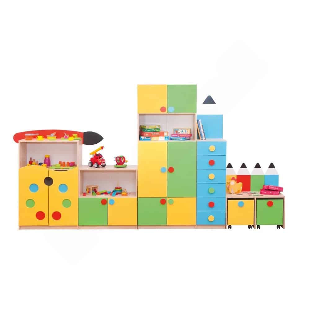 Möbelsatz Buntstifte – Farbenfroher Stauraum mit Stil
