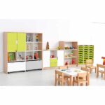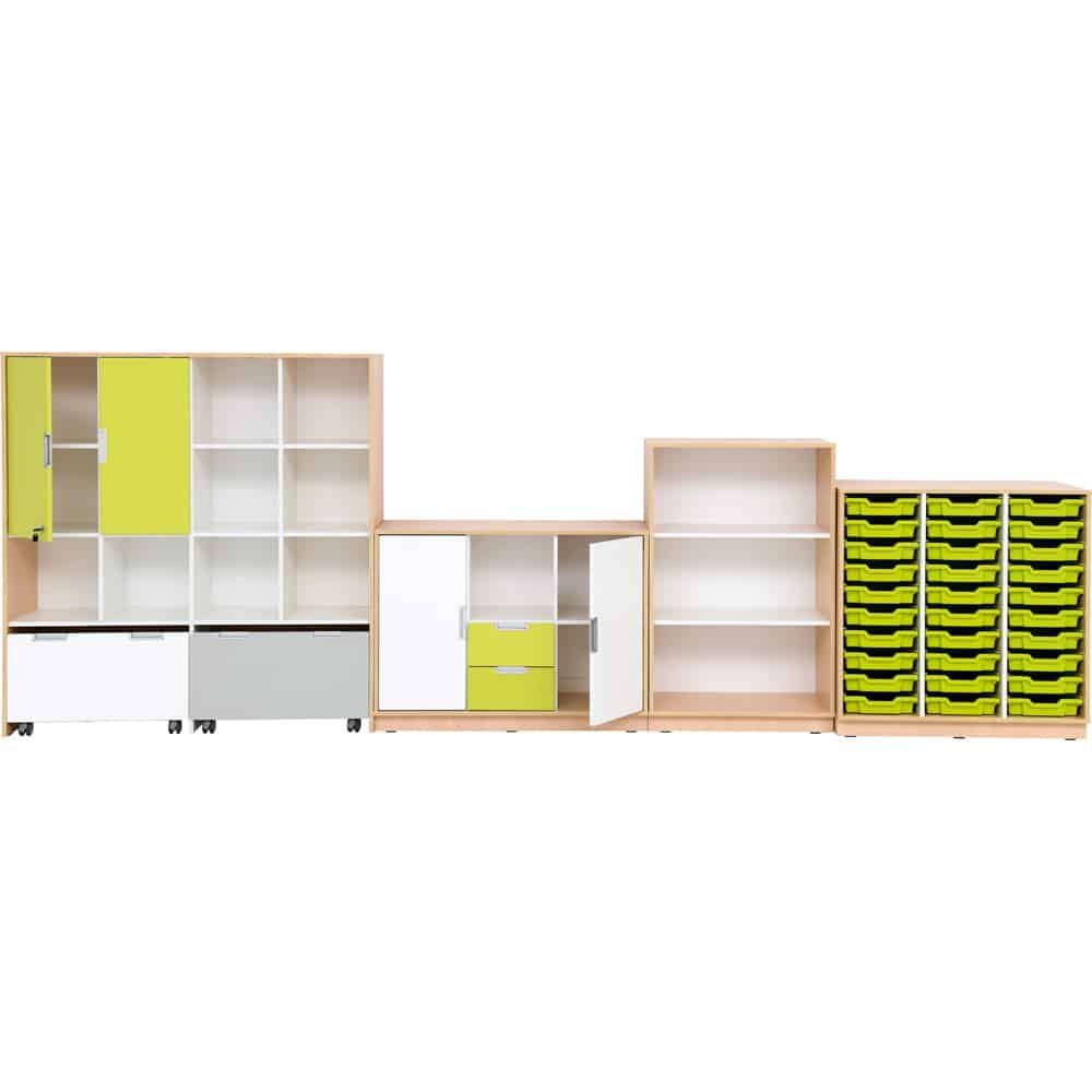 Der Möbelsatz Quadro 181-180° vereint durchdachte Organisation, stilvolles Design und höchste Sicherheitsstandards. Perfekt für Kindergärten, Schulen und Zuhause, bietet dieser Möbelsatz flexible Stauraummöglichkeiten und ein ansprechendes Erscheinungsbild.