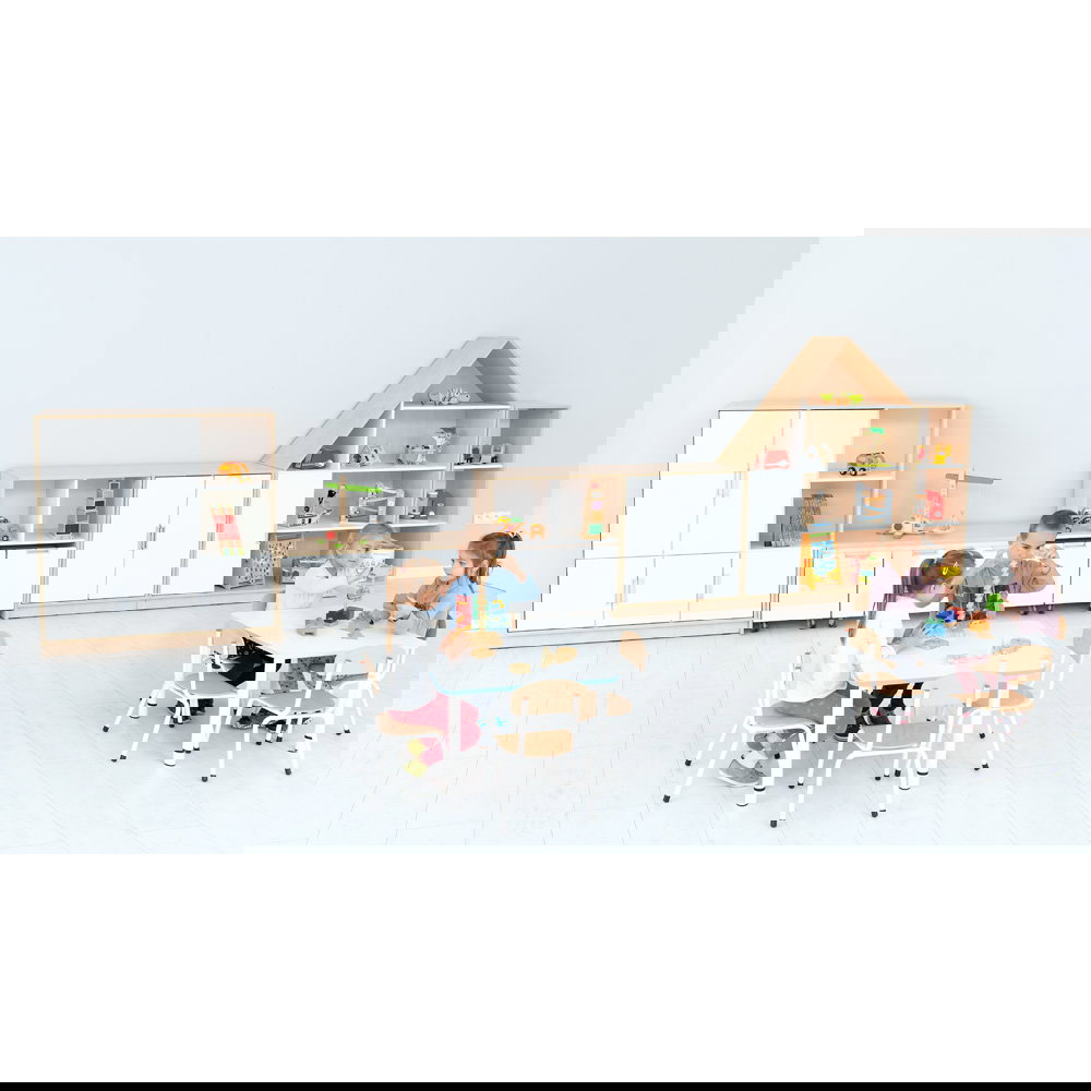 Vier integrierte Rollbehälter in zwei Größen machen Materialien und Spielzeug mobil und anpassungsfähig für dynamische Lern- und Spielprozesse. - Durchdachte und sichere Konstruktion