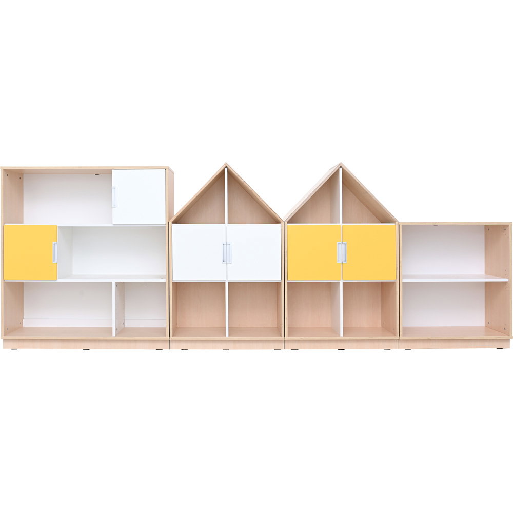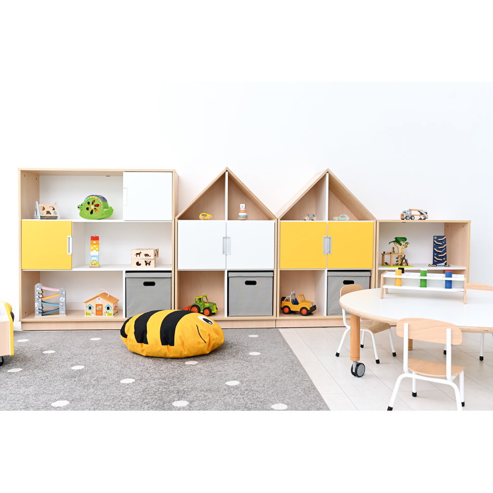 Dieser umfangreiche Möbelsatz bietet Ihnen auf ganzer Linie den Platz, den Sie für einen reibungslosen Ablauf benötigen. Hinter den kleinen, farbigen Türen verbergen sich praktische Fächer für kleinteiliges Arbeitsmaterial, während offene Regalbereiche einen schnellen Zugriff auf Bücher oder häufig genutzte Spielsachen ermöglichen. So hat jeder Gegenstand seinen festen Ort. - Robuste Konstruktion für intensive Nutzung