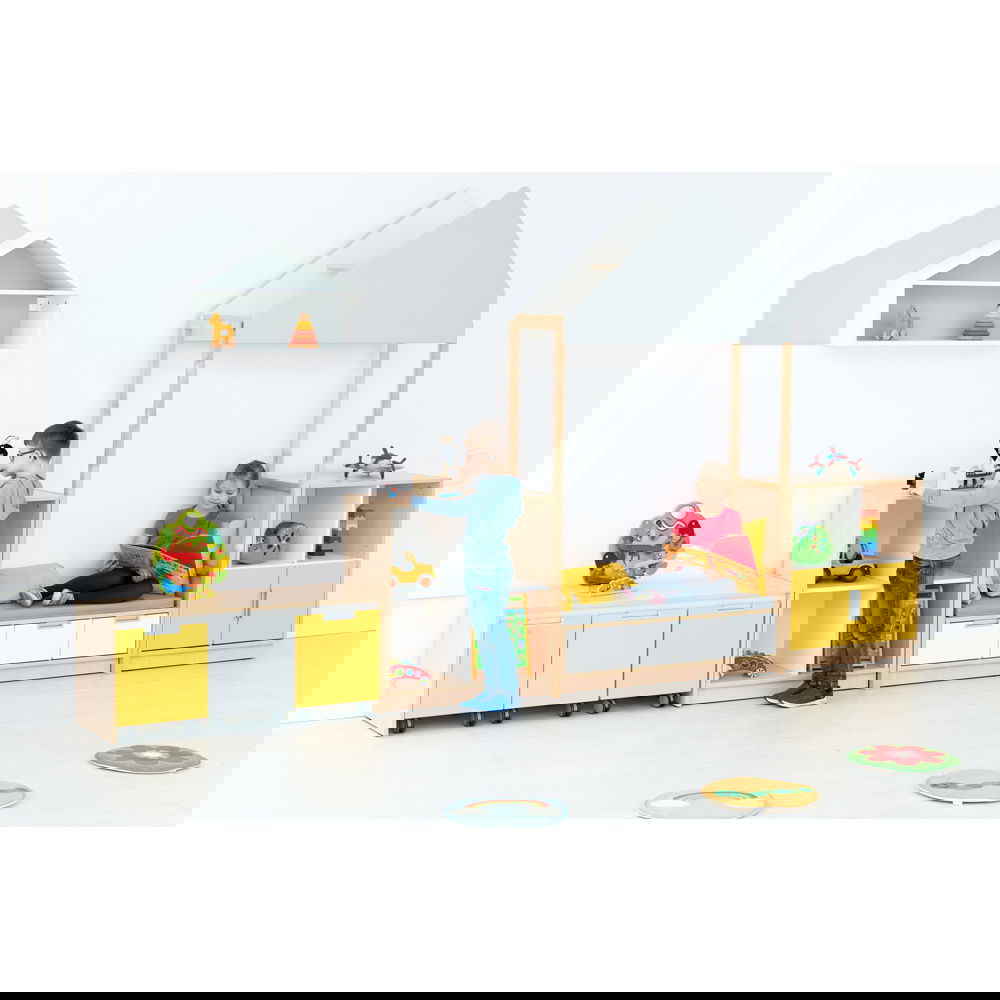 Strukturieren Sie Ihre Gruppenräume effizient und schaffen Sie einen Ort, an dem Kinder gerne spielen, lernen und sich ausruhen. Investieren Sie in den vielseitigen Möbelsatz Quadro 175/175W und bringen Sie Ordnung und Fantasie in perfekten Einklang.