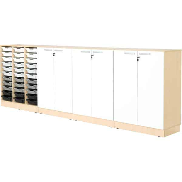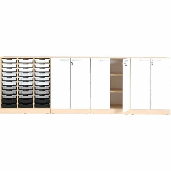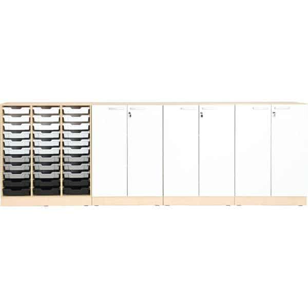 Möbelsatz Schrank Grande 46 – Tiefe: 48 cm – Ahorn, Türen weiß für Kindergarten und Krippe