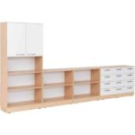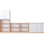 Möbelsatz Schrank Grande 62 – Tiefe: 38 cm – Ahorn, Fronten weiß für Kindergarten und Krippe