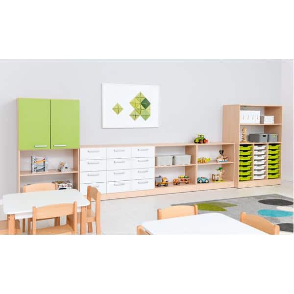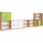 Möbelsatz Schrank Grande 65 – Tiefe: 38/48 cm – Ahorn für Kindergarten und Krippe