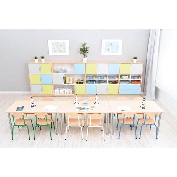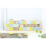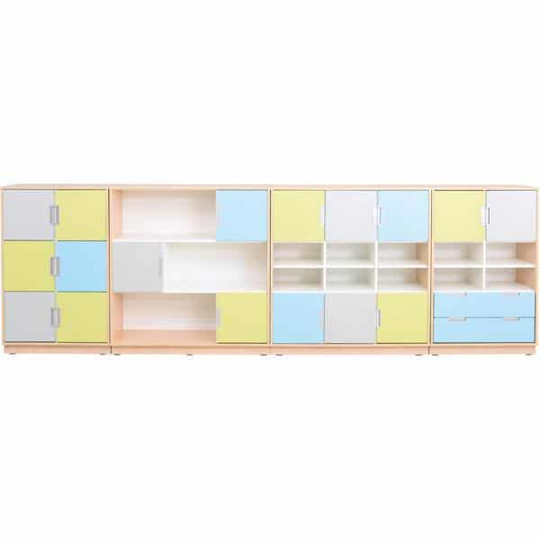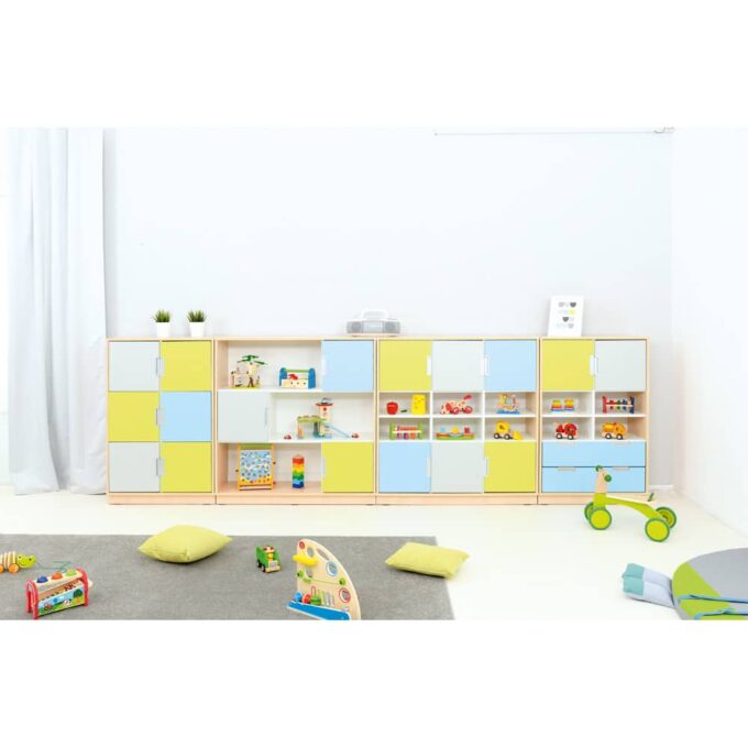 Der Möbelsatz Schrank L – grau/hellblau/limone – Quadro 79-180° bietet eine beeindruckende Kombination aus Design und Funktionalität, die Ihre Räume ordentlich und farbenfroh gestaltet. Ideal für Kindergärten, Schulen und Zuhause, gewährleistet dieser Möbelsatz eine strukturierte und ansprechende Umgebung.