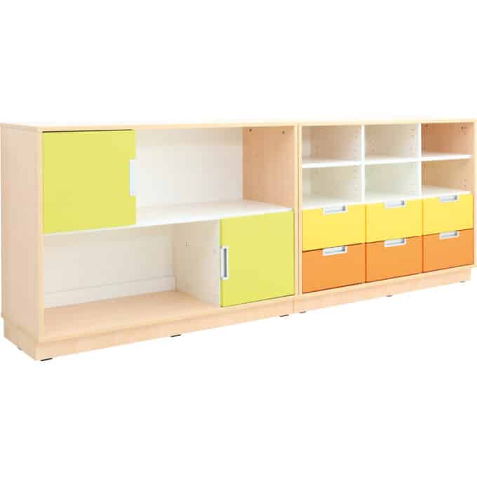 Der Möbelsatz Quadro 109-180° bietet eine farbenfrohe und praktische Lösung für Ihre Aufbewahrungsbedürfnisse. Dieser vielseitige Möbelsatz ist perfekt für Kindergärten, Schulen und auch zuhause und kombiniert stilvolles Design mit hoher Funktionalität.
