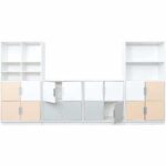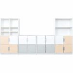 Mit unterschiedlichen Schrankgrößen und flexiblen Einlegeböden passt sich dieser Möbelsatz ideal an Ihre individuellen Bedürfnisse an. Ob für Bücher, Spielzeug oder Lernmaterialien – hier finden alle Ihre Utensilien einen festen Platz.
