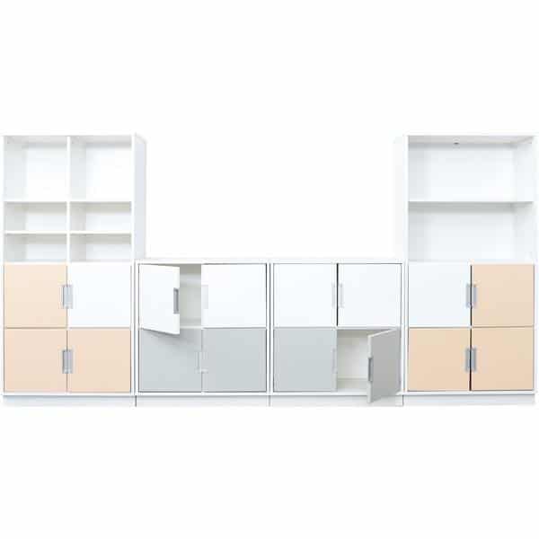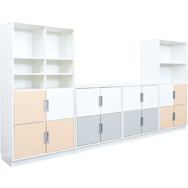 Der Möbelsatz Schrank M+XL – weiß/grau/beige – Quadro 85-180° bietet eine perfekte Kombination aus stilvollem Design und hoher Funktionalität. Ideal für Kindergärten, Schulen und Zuhause, bringt dieser Möbelsatz Ordnung und Eleganz in jede Umgebung.