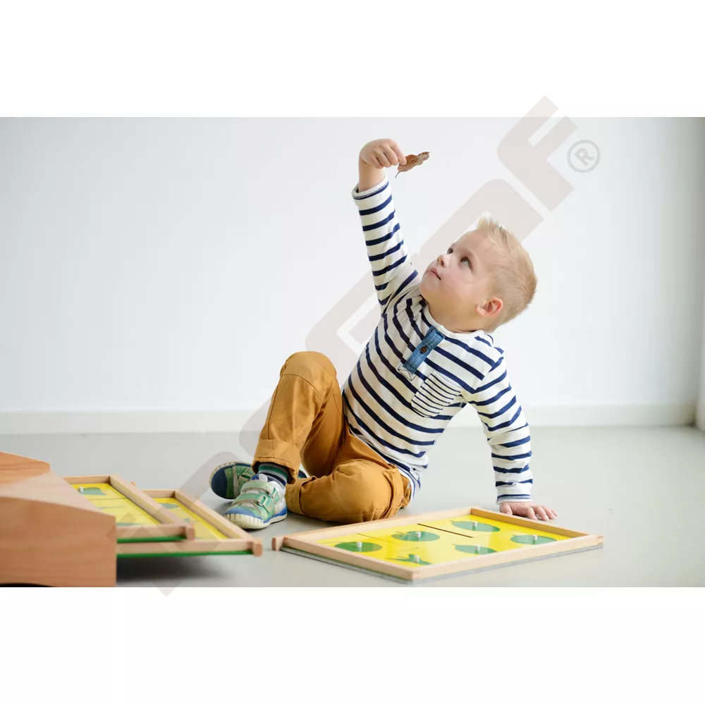 Die Montessori Botanische Kommode ist ein hervorragendes Lehrmaterial, das das Interesse an der Natur fördert und die Entwicklung des visuellen Gedächtnisses unterstützt. Diese Kommode mit 3 Schubladen enthält 18 Brettchen mit eingelegten Blattformen. Kinder lernen nicht nur, die verschiedenen Blattformen zu erkennen und zu benennen, sondern erweitern auch ihren Wortschatz und ihre kognitiven Fähigkeiten.