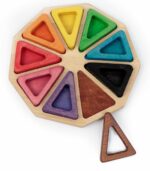 Jedes Stück des Montessori Farbkreises ist aus einem einzigen Stück Buchenholz gefertigt und somit einzigartig in Form und Maserung. Die natürliche Lasierung sorgt für eine ansprechende Optik und bewahrt die kindgerechte Benutzung. Das Farbensortierbrett hat die Maße von ca. 22 x 22 x 1 cm und die Farbdreiecke haben jeweils 7,5 x 5,5 x 1 cm.