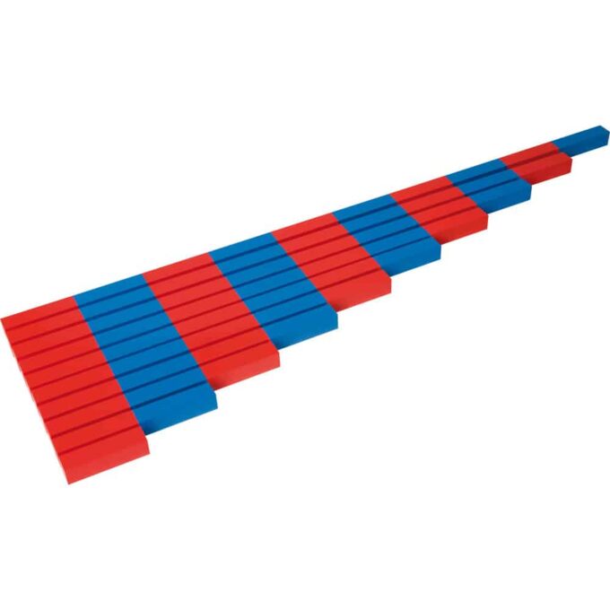 Entdecken Sie die Montessori Lange Numerische Stangen: Fördert Zählen, Längenvergleich und Raumwahrnehmung. Ideal für Kindergärten, aus Holz, Länge: 10–100 cm.