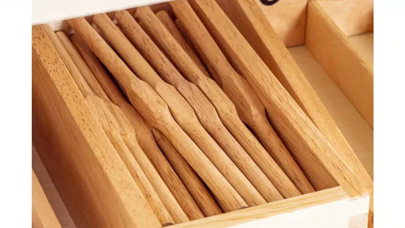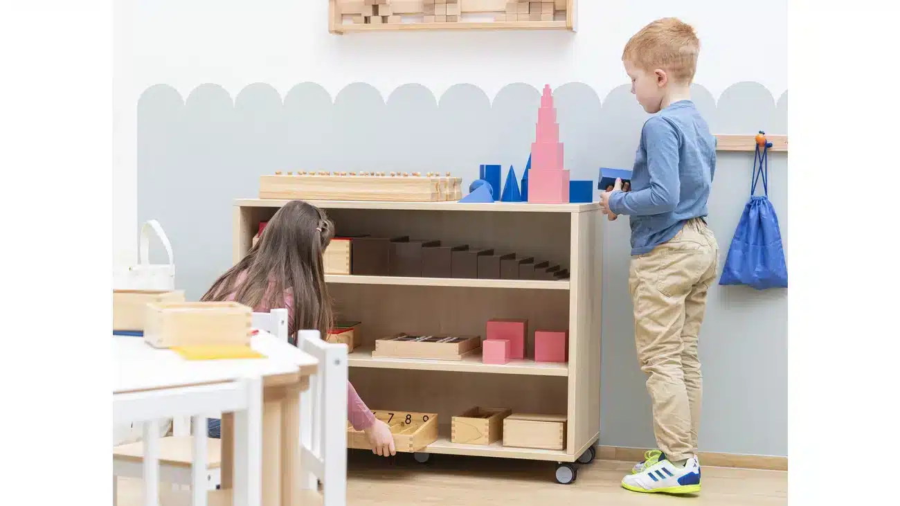 Im Betzold Montessori-Lernwagen entdecken die Kinder eine Vielzahl von Materialien, die alle darauf ausgelegt sind, verschiedene Kompetenzen zu fördern: