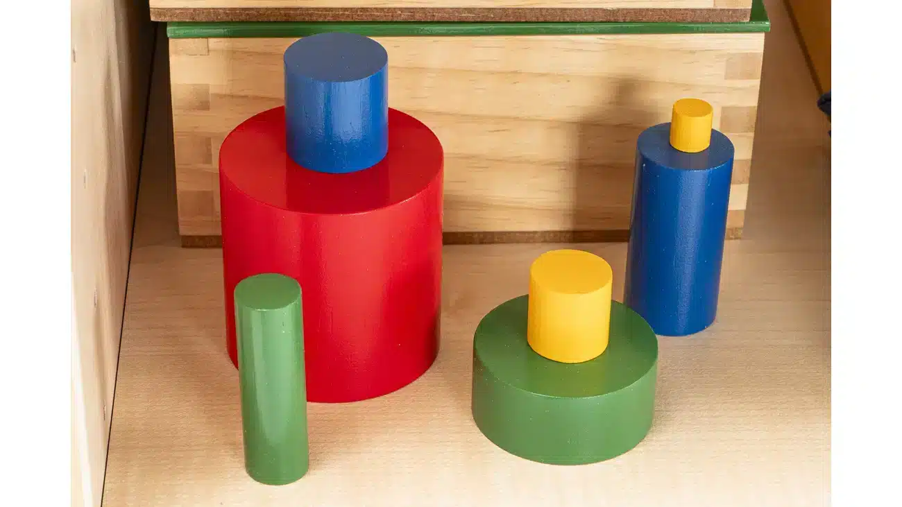 - Zylinderblock-Set: Schult die Taktilität und das geometrische Verständnis.