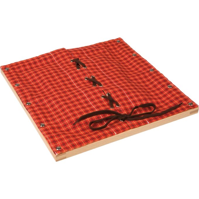 Mit dem Montessori-Rahmen – Schnüren können Kinder ihre Feinmotorik und Bewegungskoordination auf spielerische Weise verbessern. Ob beim Schnüren, Schleifenbinden oder Fädeln – dieser Rahmen unterstützt Kinder dabei, selbstständiger zu werden und wichtige Handlungsabläufe zu erlernen. Gefertigt aus hochwertigem Buchenholz und strapazierfähigem Textilmaterial, ist der Rahmen extrem robust und sicher befestigt.