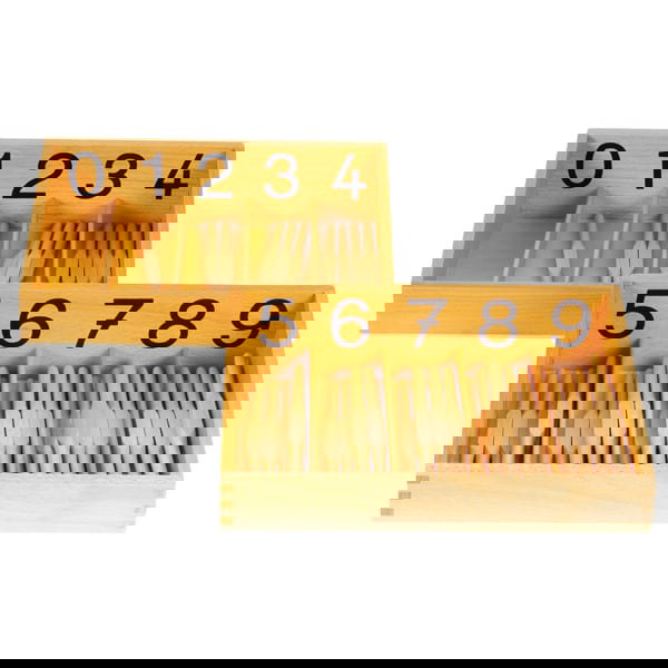 Besonders die Einführung des Zahlenwerts Null wird hier anschaulich vermittelt: Das Fach mit der Beschriftung 0 bleibt leer, sodass das Kind die Bedeutung von „nichts“ begreift. Mit insgesamt 45 hochwertigen Spindeln, die aus Buchenholz gefertigt sind, können die Ziffern präzise zugeordnet und gestapelt werden.