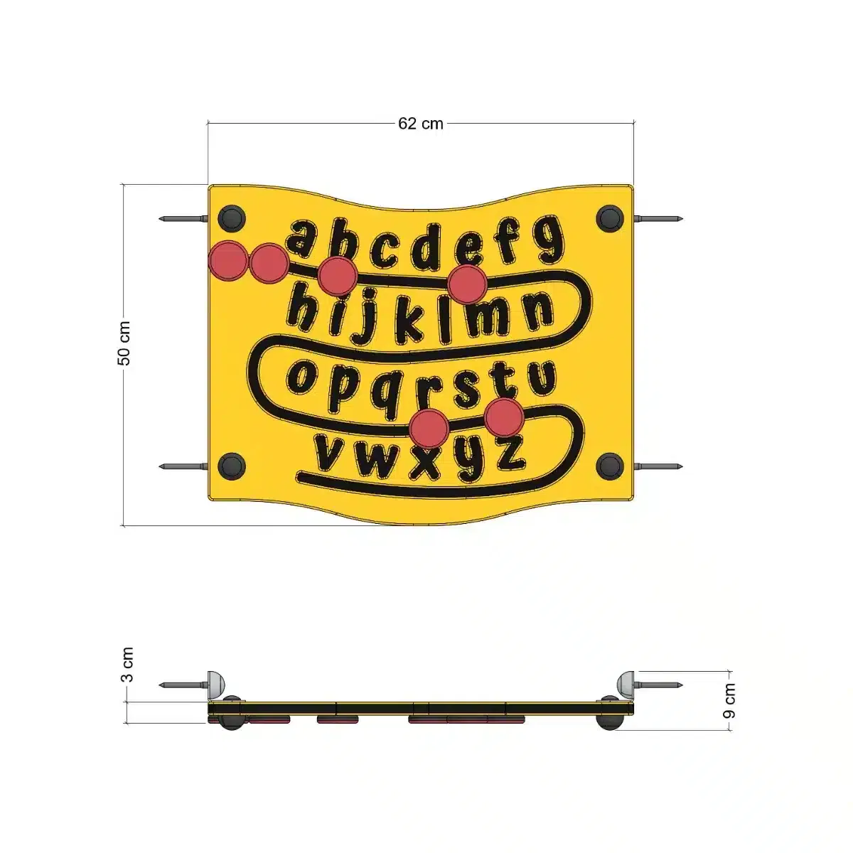 Willkommen zur Motorik-Spielwand Wickey PRO Educate Alphabet! Diese innovative Spielwand ist die perfekte Ergänzung für öffentliche Spielplätze, Kindergärten und Schulen. Sie bietet Kindern vielfältige Lernmöglichkeiten, fördert die Feinmotorik, die Kognition und schafft eine attraktive Umgebung für Familien.