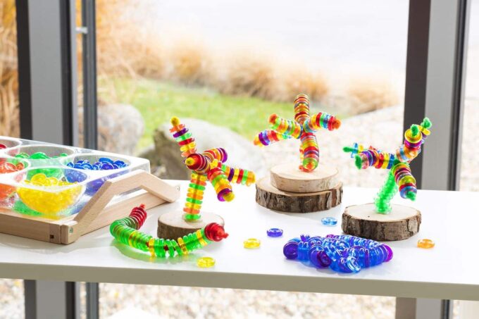 - Spielerische Farblehre: Die transparenten Perlen laden dazu ein, die Wirkung von Farben in verschiedenen Lichtquellen zu erforschen – ideal, um ästhetisches Verständnis zu fördern.